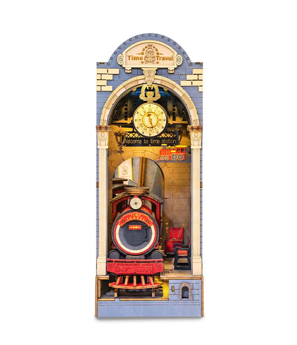 Kunne du tænke dig at rejse i tiden? Eller bare lade tankerne flyde? Byg selv en minitidsrejse af de 258 brikker/dele, mens du glemmer alt omkring dig. Den er lige til at sætte på bogreolen som bogstøtte sammen med dine bøger. Det her fine DIY 3D-puslespil har 258 brikker/dele, og du får præcise instruktioner til, hvordan du samler det. Der følger ledninger med til en lille lampe inden i 3D puslespillet, så den færdige Book Nook kan lyse fint op.