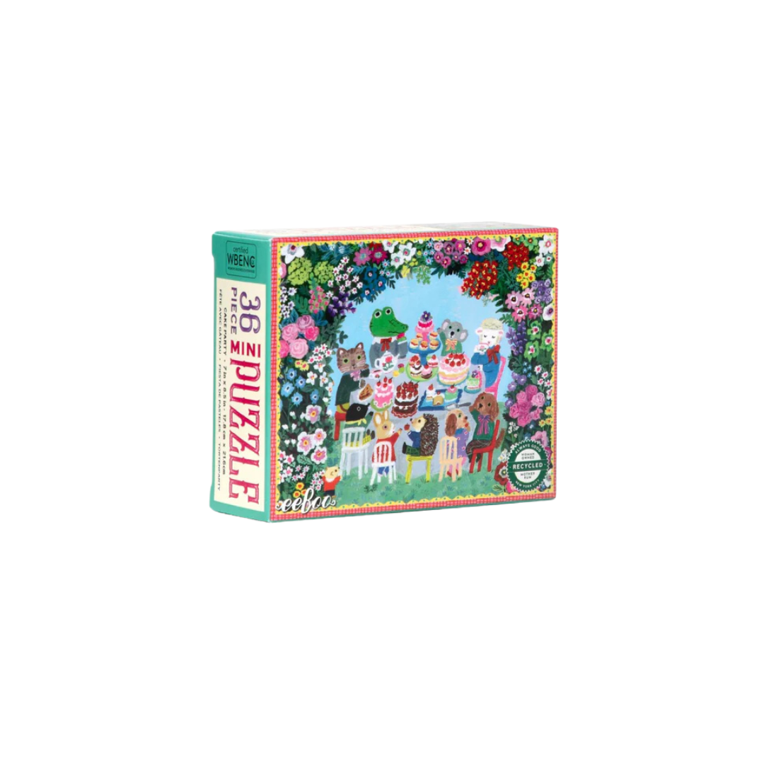 Kom med til kagefest! Det festlige bord er dækket og pyntet med blomster og de lækreste kager, og nu venter gæsterne kun på dig i det her minipuslespil for børn +3 år. Det er perfekt til en lille skolegave eller i pakkekalenderen.