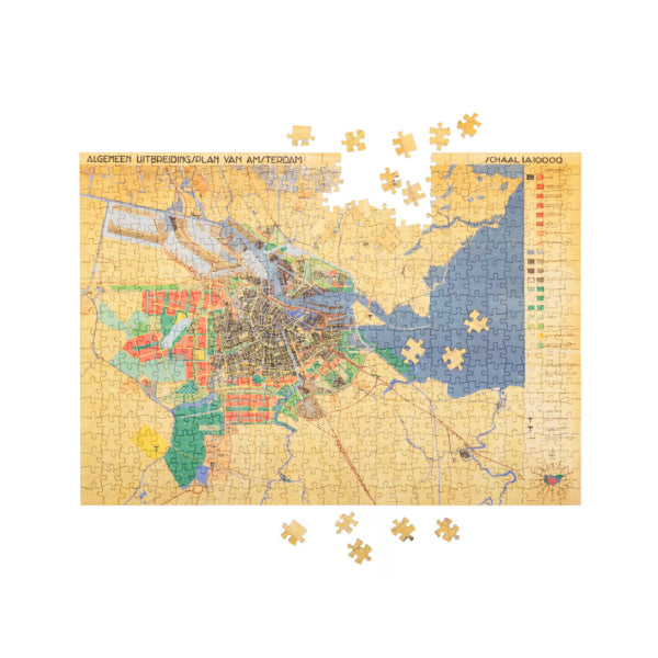 Spændende historisk kort over Amsterdam fra 1934. Den Generelle Udvidelsesplan (Algemeen Uitbreidingsplan, eller AUP) er en byplan for den hollandske by Amsterdam, udarbejdet i 1934 af arkitekten Cornelis van Eesteren. Med udgangspunkt i den tidligere plan, Zuidplanen fra 1915 af Hendrik Petrus Berlage, regulerede AUP byens udvidelse som følge af den kraftige befolkningstilvækst, der havde fundet sted siden slutningen af det 19. århundrede.
